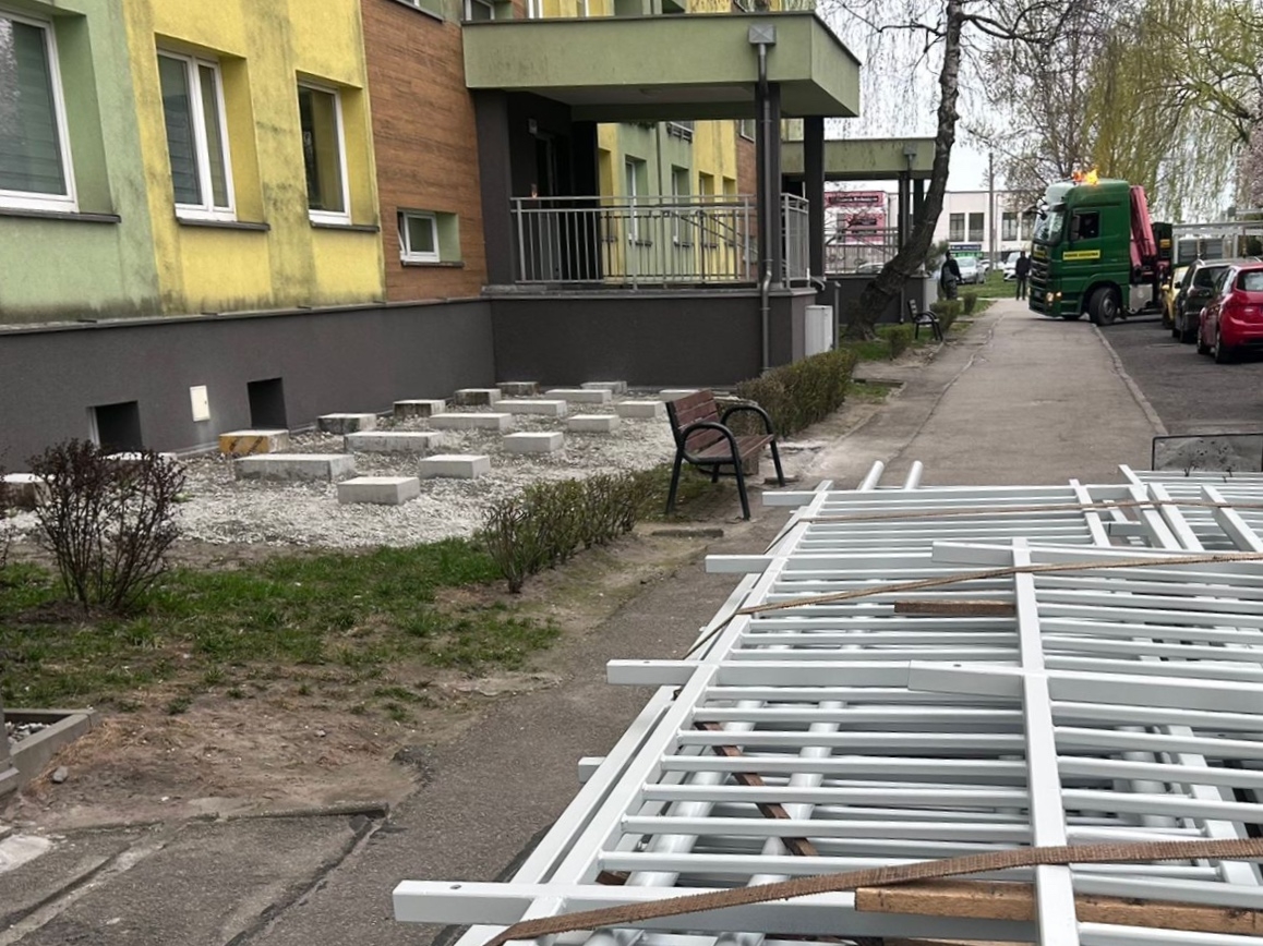 Trwa montaż pochylni dla osób niepełnosprawnych przy ul. Białostockiej 42